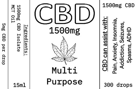 - 1500mg CBD Isolate in 15ml MCT oil
