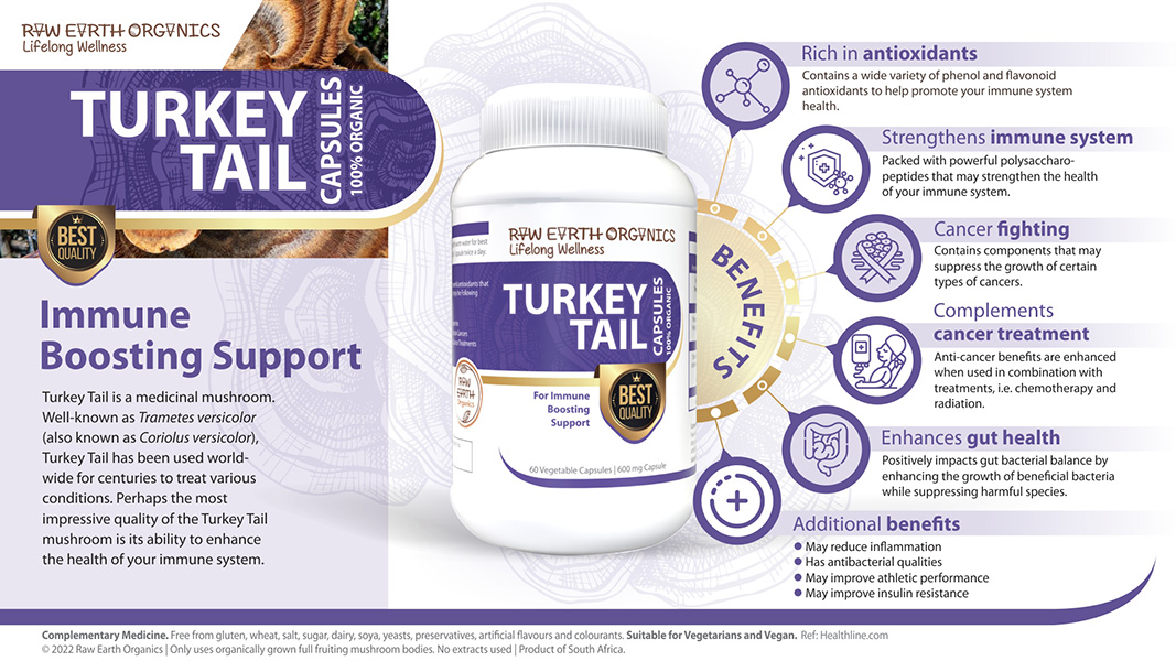Turkey Tail is a medicinal mushroom. Well-known as Trametes versicolor (also known as Coriolus versicolor), Turkey Tail has been used world-wide for centuries to treat various conditions.